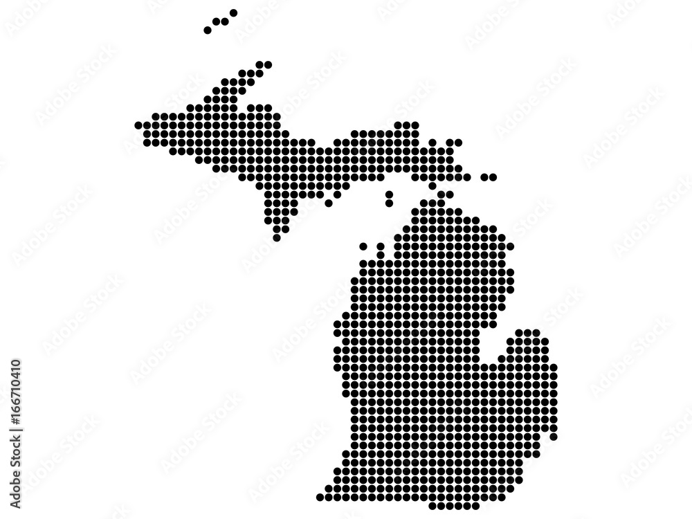 Map of Michigan state print. White background, black dots. Vector